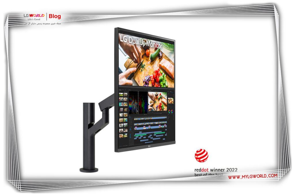 مانیتور LG DualUp Monitor Ergo سومین برگزیده بهترین Red Dot امسال ال‌جی، برای ارائه یک تجربه نمایشی برتر با راحتی ارگونومیک بیشتر طراحی شده است. این مانیتور با داشتن نسبت تصویر 16:18، صفحه نمایش با وضوح 2,560x 2,880، طراحی شیک و کاربردی و قابلیت اتصال پیشرفته، راحتی کاربر را با پایه فوق‌العاده قابل تنظیم و فضاکارآمد LG Ergo افزایش داده و به طور ایمن به اکثر میزها و دسکتاپ‌ها متصل می‌شود.