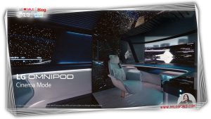 LG OMNIPOD یک وسیله نقلیه کاملاً خودمختار است که به عنوان امتداد خانه با فضای نشیمن داخلی که با نیازهای منحصر به فرد مسافر سازگار است، عمل می‌کند. این می‌تواند به معنای هر چیزی باشد؛ از خدمت کردن به عنوان فضای اداری، یک استودیوی ضبط، اتاق کار ویرایش ویدیو یا حتی یک سالن. صفحه نمایش تونل گسترده OMNIPOD (صفحه متا محیطی) که از کف تا سقف امتداد دارد، کلید دستیابی به تأثیر محیط‌های مختلف است.