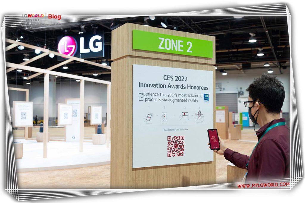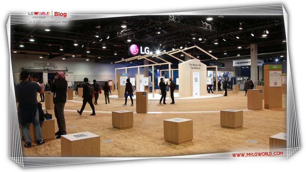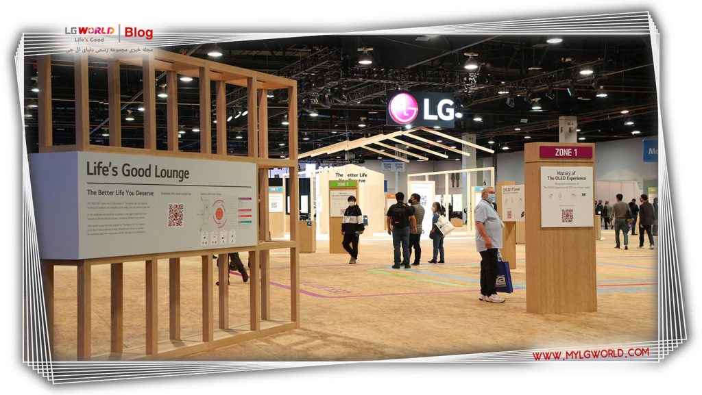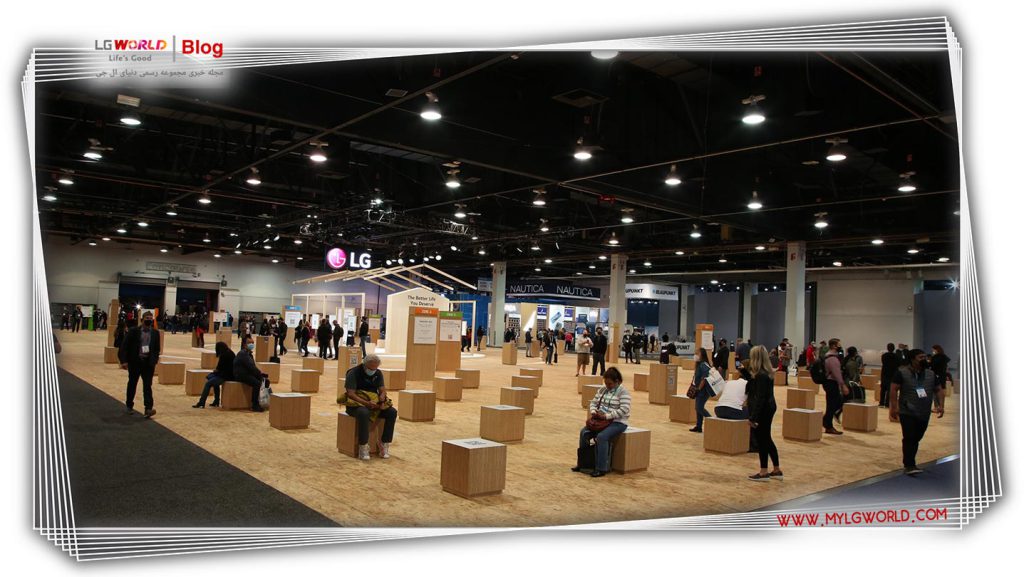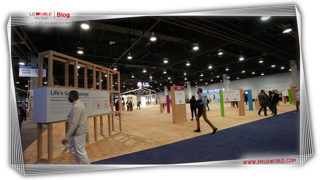 مفهوم غرفه منحصربهفرد که بازدیدکنندگان را از فضای فیزیکی به تجربه دیجیتال الجی با استفاده از واقعیت مجازی و واقعیت افزوده متصل میکند، دارای مجموعهای از کیوسکها است که بازدیدکنندگان میتوانند نحوه تلاش الجی برای ارتقای تمام جنبههای زندگی روزمره را از طریق نوآوریهای فنی و طراحی تجربه کنند. مطابق با موضوع CES الجی برای سال 2022، زندگی بهتری که سزاوار آن هستید، این نمایشگاه پایدار تماماً از تختههای تختهای بازیافتی (OSB) ساخته شده از فشردهسازی ضایعات چوب و حذف استفاده از چسب، رنگ و براق دهنده ساخته شده است. طراحی نمایشگاه برای تسهیل بازیافت آسان پس از نمایشگاه ساده شد.
