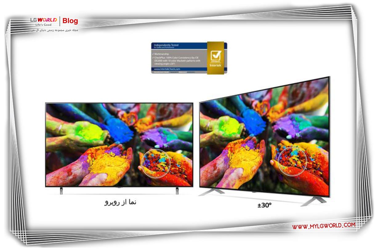 تلویزیون LG NanoCell با فناوری نانو، رنگ‌های خالص را به طور یکنواخت از همه زوایا نشان می‌دهد. این امر نشان‌دهنده سازگاری نمایشگر از نظر رنگ و روشنایی است. بر اساس گواهی اینترتک، تلویزیون LG NanoCell با CIE DE2000 از میان 18 الگوی رنگی با زاویه دید °30± یکنواختی رنگ بالایی به میزان %100 را نشان می‌دهد. به عبارت دیگر، تلویزیون LG NanoCell رنگ‌ها را حتی هنگام تماشا از زوایای عریض به صورت غنی و دقیق نمایش می‌دهد.