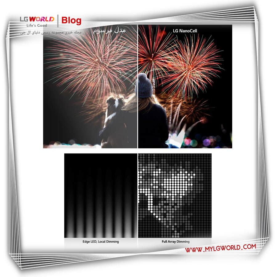 تلویزیون LG NanoCell تصویر را با رنگ‌های خالص، نمایش می‌دهد. فناوری Full Array Local Dimming دارای چندین زون نوردهی است که در پشت صفحه تلویزیون قرار دارند. این نواحی را می‌توان به طور مستقل کنترل کرد تا سطح سیاهی برای جزئیات بیشتر و عمق بیشتر در صحنه‌های تاریک افزایش یابد. کنترل دقیق‌تر نور پس زمینه به جلوگیری از نشت نور پس زمینه و اثر هاله نیز کمک می‌کند تا کنتراست بالاتر و جزئیات بیشتر برای تصاویر، قابل دستیابی باشد.