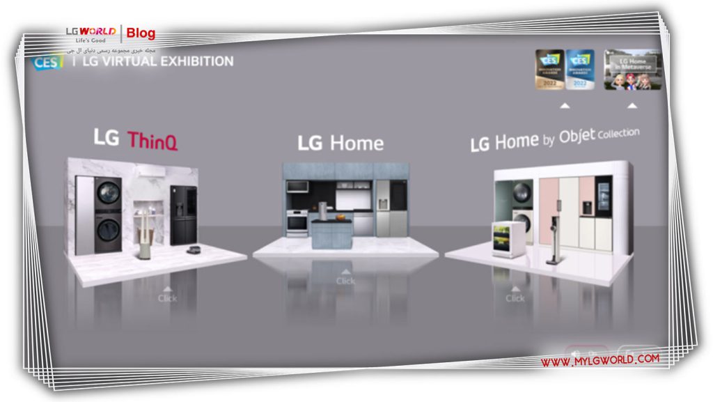 بخش لوازم خانگی الجی در غرفه این شرکت استودیوی مجازی الجی در سه منطقه جداگانه نمایش داده میشود: LG OLED در Metaverse ، Showroom مجازی و LG OLED Art. هر سه منطقه به بازدیدکنندگان این امکان را میدهد که جدیدترین محصولات شرکت را به روشهای متقاعدکننده و تعاملی کشف و تجربه کنند.