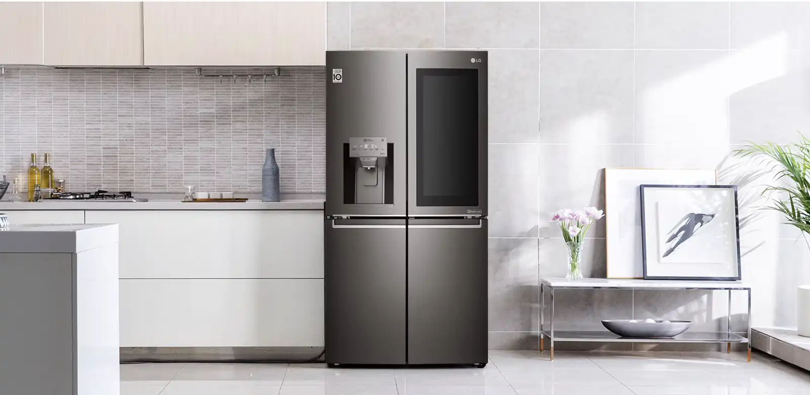 با دو بار ضربه زدن سریع روی پنل شیشهای براق، بدون باز کردن درب میتوانید داخل محفظه دسترسی را مشاهده و به خوراکیها و نوشیدنیهای موردعلاقه خود دسترسی پیدا کنید. با این کار هوای سرد کمتری هدر میرود و مواد غذایی برای مدت طولانیتری تازه میمانند.